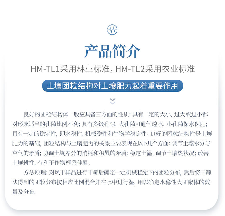 1、土壤團(tuán)粒結(jié)構(gòu)對(duì)土壤肥力起著重要作用。良好的團(tuán)粒結(jié)構(gòu)體一般應(yīng)具備三方面的性質(zhì):具有一定的大小,過大或過小都對(duì)形成適當(dāng)?shù)目紫侗壤焕?具有多級(jí)孔隙,大孔隙可通氣透水,小孔隙保水保肥;具有一定的穩(wěn)定性,即水穩(wěn)性、機(jī)械穩(wěn)性和生物學(xué)穩(wěn)定性。良好的團(tuán)粒結(jié)構(gòu)性是土壤肥力的基礎(chǔ),團(tuán)粒結(jié)構(gòu)與土壤肥力的關(guān)系主要表現(xiàn)在以下幾個(gè)方面:調(diào)節(jié)土壤水分與空氣的矛盾;協(xié)調(diào)土壤養(yǎng)分的消耗和積累的矛盾;穩(wěn)定土溫,調(diào)節(jié)土壤熱狀況;改善土壤耕性,有利于作物根系伸展。土壤團(tuán)粒分析儀適用于土壤、環(huán)境、地質(zhì)等試驗(yàn)室對(duì)團(tuán)聚體的分析。
